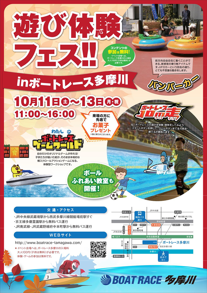 遊び体験フェスinボートレース多摩川開催!! 10月11日(土)~10月13日(月・祝)