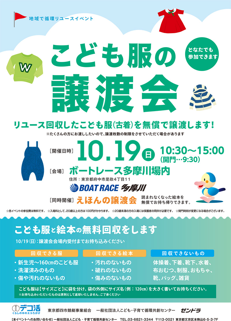 ボートレース多摩川本場にて、こども服の譲渡会及びワークショップを行います。