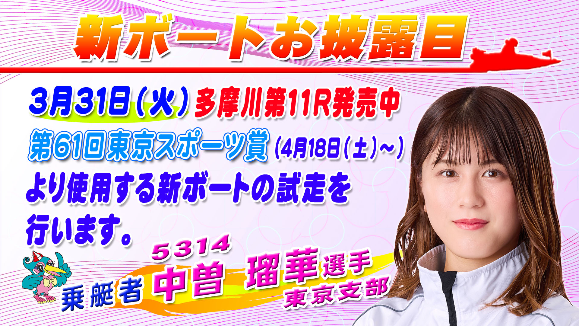 ボートレース多摩川では、4月18日(土)から開催の「第61回東京スポーツ賞」初日より、新ボート・モーターを使用いたします。