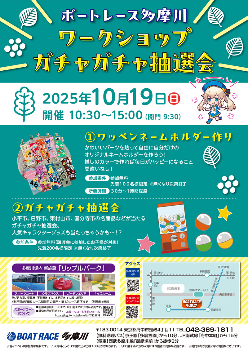 ※ボートレース多摩川への入場料として、20歳以上の方は100円がかかります。また、20歳未満の方の入場には保護者の同伴が必要です。